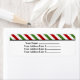 This label design features red, white and green stripes at the top, along with a customizable address. Some would consider the red, green and white coloring to be representative of Christmas.