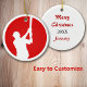 Your favorite slugger will love this Christmas Ornament, which is personalized for him. One side has a silhouette white batter ready to swing, and framed in red. The back of the ornament is also white, with three text fields in red and black for you to customize. *Clip art used in this design is copyrighted by Encore Software, Inc., which permits use to its licensors. All rights reserved