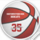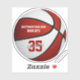 This custom basketball sticker features the realistic image of a basketball that has alternating red and white recolored panels upon which you can personalize the athlete's name and jersey number plus school or club name and mascot name - by katz_d_zynes
