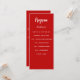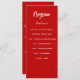 Program and menu card. Personalize and add your name, date and the menu. Red background, white text.