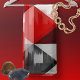 Strong diagonals make this abstract a striking design. The dominant colors are red, black, and white.