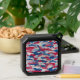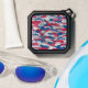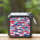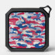 A camouflage print with red white and blue colors based on the same hues as the official colors of th US flag.