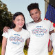 Super fun and festive 4th of July t-shirt featuring red, white and blue fireworks and 3 lines of custom text. Perfect as matching friends and family shirts for your July 4th party. Also great for Memorial Day or Veteran's and the perfect way to show your American pride.