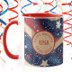 This customizable mug is a fantastic option for personalizing your celebration! You can add any name and customize the date range of 1776-2026, along with the phrase "Happy Birthday USA," or modify it to your preference. This makes the mug an ideal party favor for guests at various events, from Corporate to Red, White, and Gold-themed birthday parties, dinner barbecues, Fourth of July celebrations, Memorial Day, Veterans Day, family reunions, National Boss Day, and election day festivities. The design features prominent American colors—red, white, blue, and gold—arranged in stylish stripes and stars, adding a festive touch to any occasion.