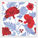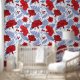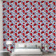 Red, White & Blue Indian Floral Pattern Wallpaper