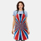 Great color and even though I ordered the kid size, it covers well enough to use during the holidays. I am not a big woman and prefer a shorter apron. I stand 5"6" and the length of the garment goes to mid-thigh. The tie straps fit well at my waist and even though there is no neck strap adjustment, the opening is plenty big enough. I am happy with the size and fit. I am sharing my apron with my 10 year old grandson, too! The color is vibrant and looks good, as shown on the website. The stitching looks strong and reinforced. Photographed is front side and back side of the apron, reinforced straps and coloring. My phone camera may not be the best at showing the details.