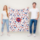 Cozy up for the game in this red, white and blue soccer balls pattern fleece blanket that features randomly arranged red, white and blue traditional style soccer balls - white background is customizable - customize with her name and monogram on a coordinating red circle pendant - by katz_d_zynes