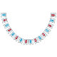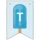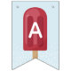 Designed to match our popsicle birthday party invitations, this cute summer bunting flag design features sixteen custom text fields to spell out your message (shown with "Happy Birthday"), with white lettering set on red and blue popsicles. A light blue background dotted with white confetti completes the design.