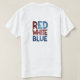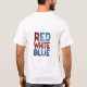 The "Red White Blue" t-shirt design showcases a striking arrangement of the American flag's colors in a modern, artistic style. The design features bold red and white stripes interspersed with blue elements, possibly including stars or abstract shapes, creating a visually appealing and patriotic look. This vibrant design is perfect for celebrating national pride and can be worn on occasions like Independence Day or sporting events.