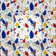 Custom pattern repeat in Terrazzo tile style print, red white blue & gold on white ground.