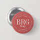 Delicate botanical round frame with customizable organic handmade text for your slogan or tag line, monogram initials or short brand name, type of product, in this case soap, and location where business started. Ideal for employees to wear at retail store , also as a promotional product or gift for loyal customers. White lettering on indian red or chestnut rose background.