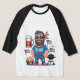 I bought the Men's Basic 3/4 Sleeve Raglan T-Shirt, White/Navy. It arrived on time for a gift and is of a great quality and fits perfectly! So cute! Zazzle has done it again! The printing was clear and filled in solidly.