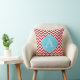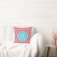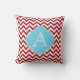 Red & White Chevron Stripes Blue Monogram Pillow.