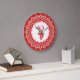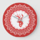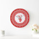 Red & White Christmas Deer White Mandala Frame Large Clock