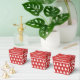 Easily personalize your Christmas party favor gifts with your message, thank you, name or monogram using the text template. This is a unique idea for your small Christmas gifts or stocking stuffers this holiday season. There are offset rows of white Christmas trees on the red background and larger trees stacked in the center front creating a geometric design. The top is a matching solid red. Note: If you want to remove the text, replace it with a blank space in the template.