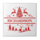 Red white Christmas family name custom name monogram holiday wooden ceramic tile. Elevate your Christmas decoration with this personalized ceramic tile. This custom family name tile adds a unique touch to your holiday decorations and makes for a thoughtful and cherished family keepsake.