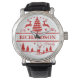 Red white Christmas family name custom name monogram holiday watch. Elevate your Christmas accessory with this personalized watch. This custom family name watch adds a unique touch to your holiday accessories and makes for a thoughtful and cherished family keepsake.