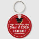 This modern red and white custom Class of 2026 graduate keychain features your high school or college name. Customize with your graduating student name under the chic handwritten script and black grad cap for a great personalized graduation key chain gift.