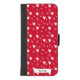 Red White Doodle Hearts Pattern Personalized Name iPhone Wallet Case
