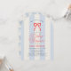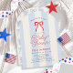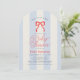This coquette "red, white and due" 4th of July boy's baby shower invitation features a red bow on a cream background with light baby blue stripes. The reverse side features a cream background with a baby blue bow pattern. Personalize it for your needs. You can find matching products at my store.