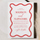 Red White Elegant Wavy Border Wedding Invitation