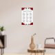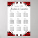© Sunny Mars Designs- Floral Hibiscus: Red on White Wedding Seating Charts for Nine Tables - Trendy, stylish, modern, elegant, classy, chic customizable Gothic wedding table seating chart template with dark red, crimson, burgundy, ruby or maroon swirly tropical hibiscus floral design against a customizable white background.
