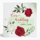 beautiful red and white flowers with romantic green leaves gold wreath wedding photo album binder.