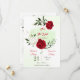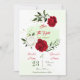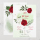 romantic red and white flowers and green leaves save the date invitation