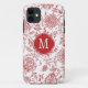 Red & White Flower Pattern Monogram Case-Mate iPhone Case