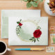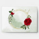 beautiful red and white flowers with romantic green leaves gold wreath wedding envelope.