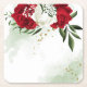 Beautiful red and white flowers with green leaves botanical party paper coaster