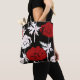 Red, white flowers on black . tote bag