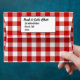 A classic red and white gingham pattern envelope inside and outside this envelope, with your names and return address on the back flap.