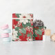 Red White Gingham Check Floral Poinsettia Pattern Wrapping Paper