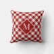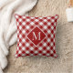 Red White Gingham Check Pattern Chic Monogram Throw Pillow
