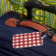 This design features a cheerful gingham check plaid pattern in traditional red and white.