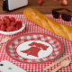 The simple geometric design in the background is a red and white, classic, gingham checks pattern with a red ring around the rim. The red Liberty Bell in the center represents our american pride. A great idea for your next Independence Day picnic or 4th of July BBQ party. This design is suitable for all occasions or backyard events this summer! Let freedom ring!!