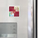 This red, white, and gold Christmas magnet has a pretty gold Christmas tree on it and has two photo template areas for you to add your own photos to. Its small enough to fit inside your Christmas cards to give loved ones a nice little gift for on their fridge. The matching Christmas card is shown below.