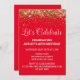 Red White & Gold Glitter 40th Birthday Party Forty Invitation