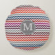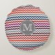 Red White Gray Chevron Zigzag Monogram Round Pillow