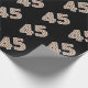 This simple and fun wrapping paper design features the number "45" having a Christmas themed green, white, and red stripes pattern, on a black colored background. It might be fun to use when wrapping presents being given to celebrate some forty fifth event that also happens to fall on December 25th (Christmas Day), such as somebody’s 45th birthday or a couple’s 45th wedding anniversary. [~Z0000408]