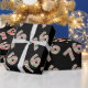 This fun and simple wrapping paper design features the number "76" having a Christmas themed red, white, and green stripes pattern, on a black colored background. Wrapping paper like this might be fun to use when wrapping presents being given to celebrate some seventy sixth event that also happens to fall on Christmas Day (December 25th), such as somebody’s 76th birthday or a couple’s 76th wedding anniversary. [~Z0000408]