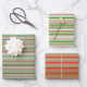 Red, White, Green Christmas Style Lines Patterns Wrapping Paper Sheets