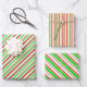 Red, White, Green Christmas Style Striped Patterns Wrapping Paper Sheets