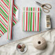 This wrapping paper design features a Christmas themed striped pattern having colors like green, white, and red. It might be fun to use wrapping paper like this when wrapping gifts or presents being given to celebrate a birthday, a wedding, an anniversary, or some other event.