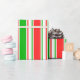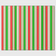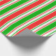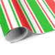 This wrapping paper design features a Christmas style striped pattern having colors like red, white, and green. Wrapping paper like this might be used when preparing presents or gifts being given to celebrate a birthday, a wedding, an anniversary, or some other event.