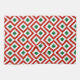 This bold red, green, and white geometric pattern is an original ornamental design perfect for Christmas. Red meanders angle around white diamonds containing small green diamonds. White zigzags provide separation between the winding crimson paths.
