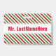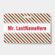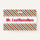 Red, White & Green Striped Pattern + Teacher Name Badge