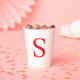 Red & White Initial Letter Monogrammed Plain Paper Cups