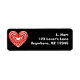 Red and white lined heart address labels. Background color can be customized.